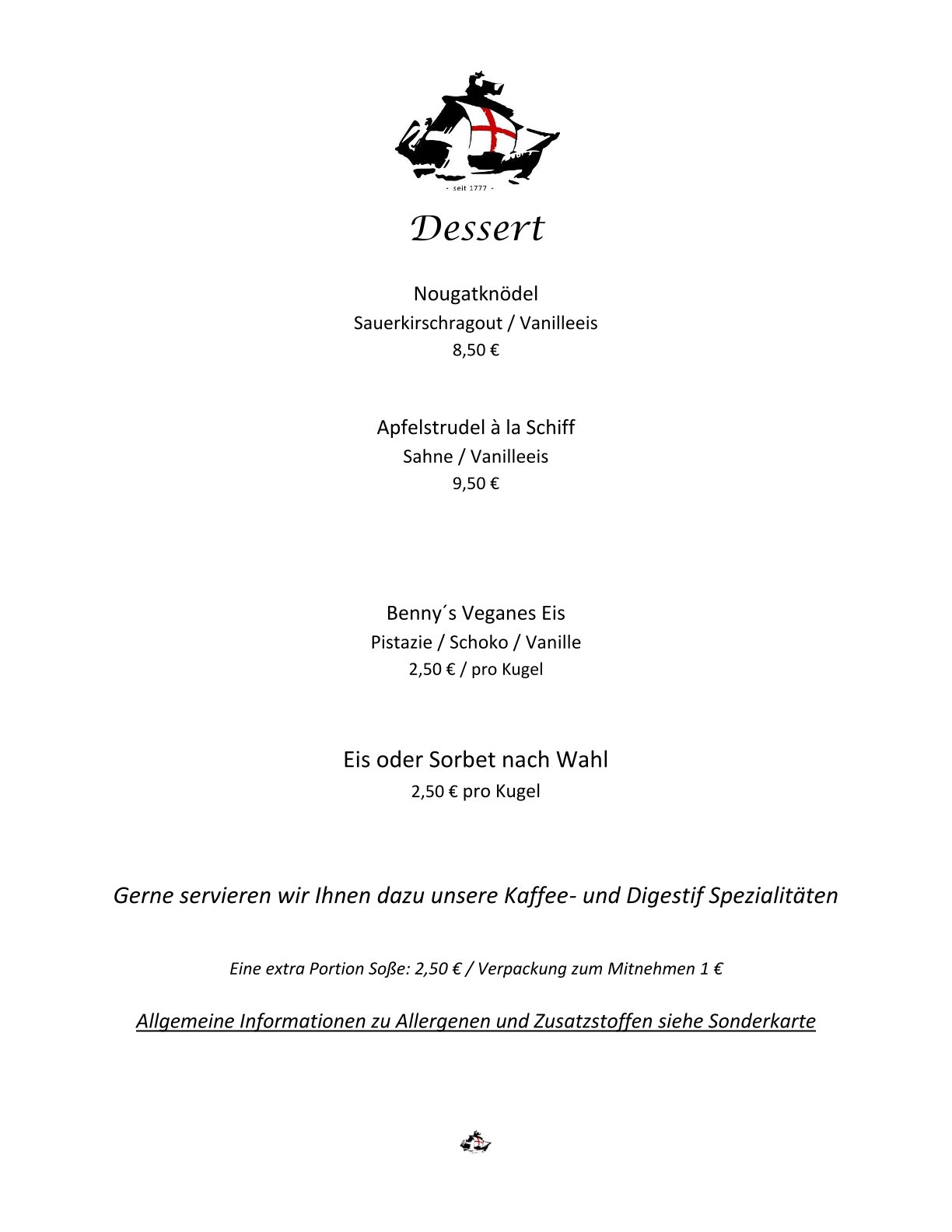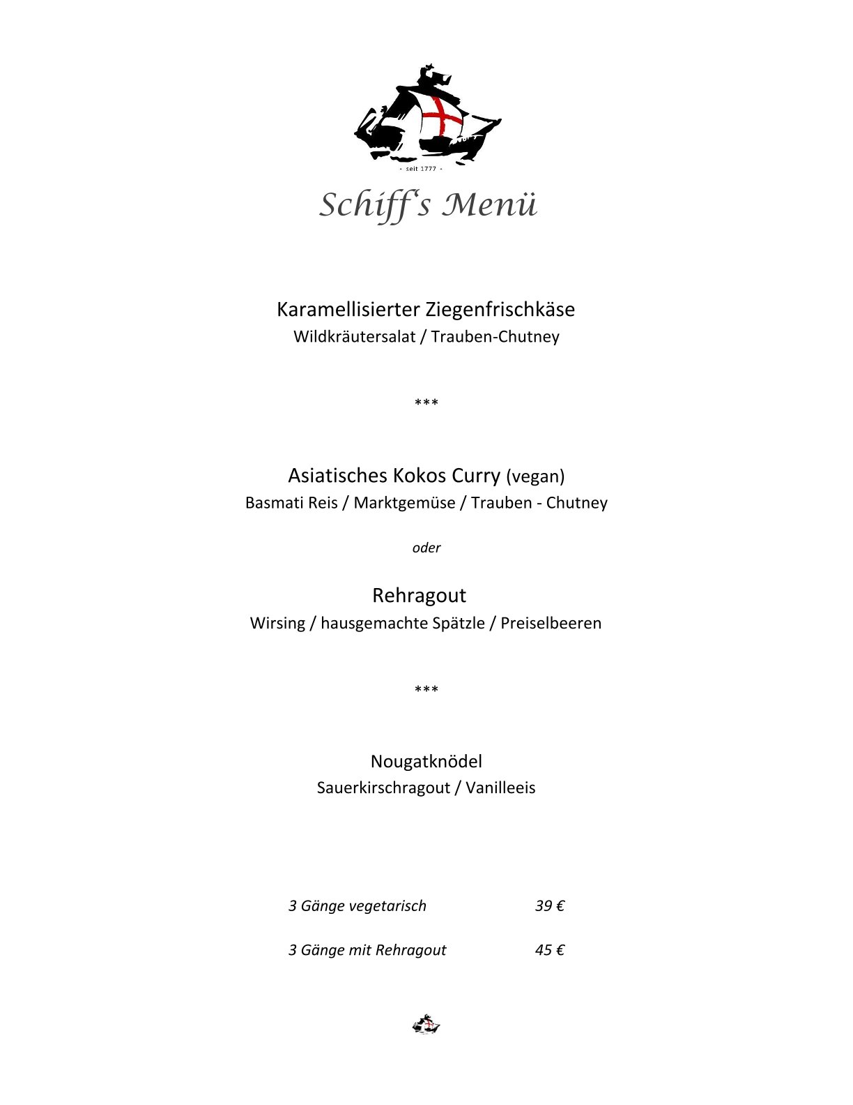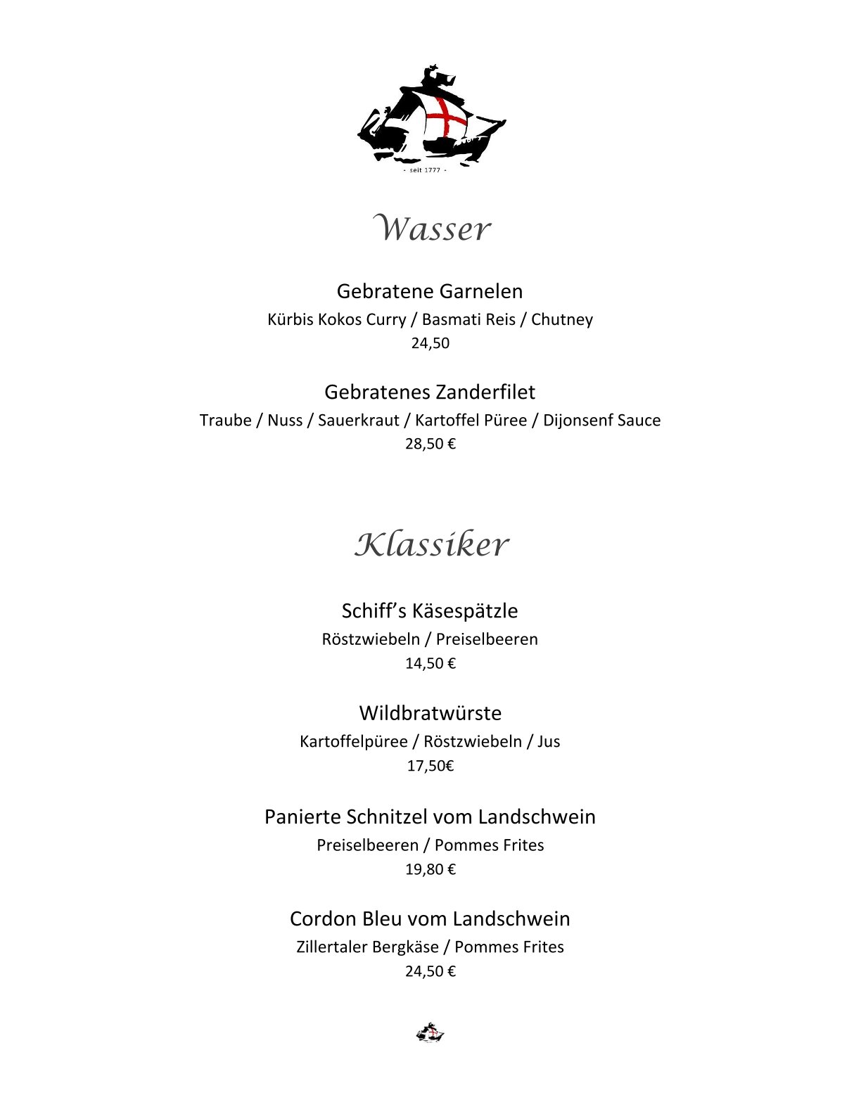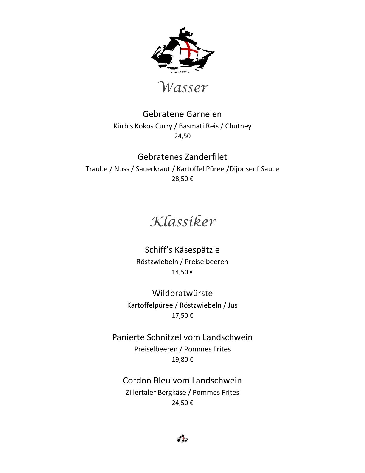 Speisekarte Restaurant Schiff Freiburg