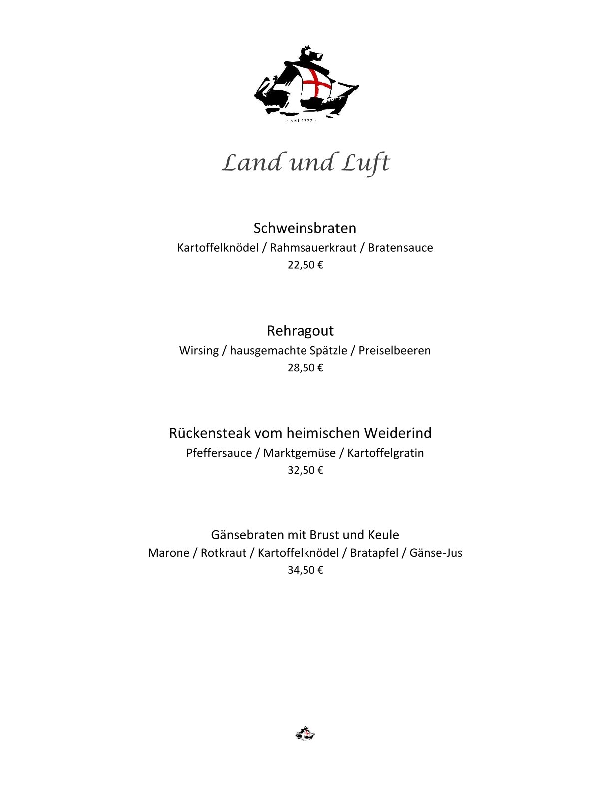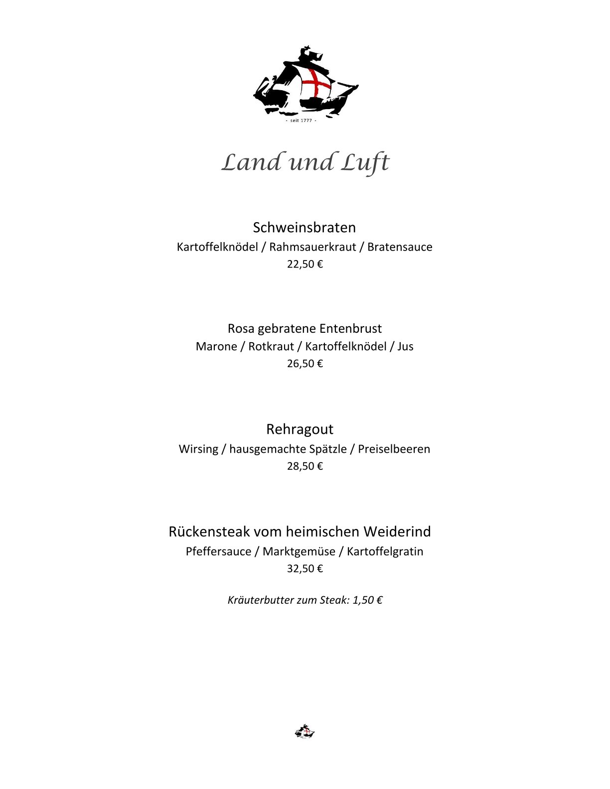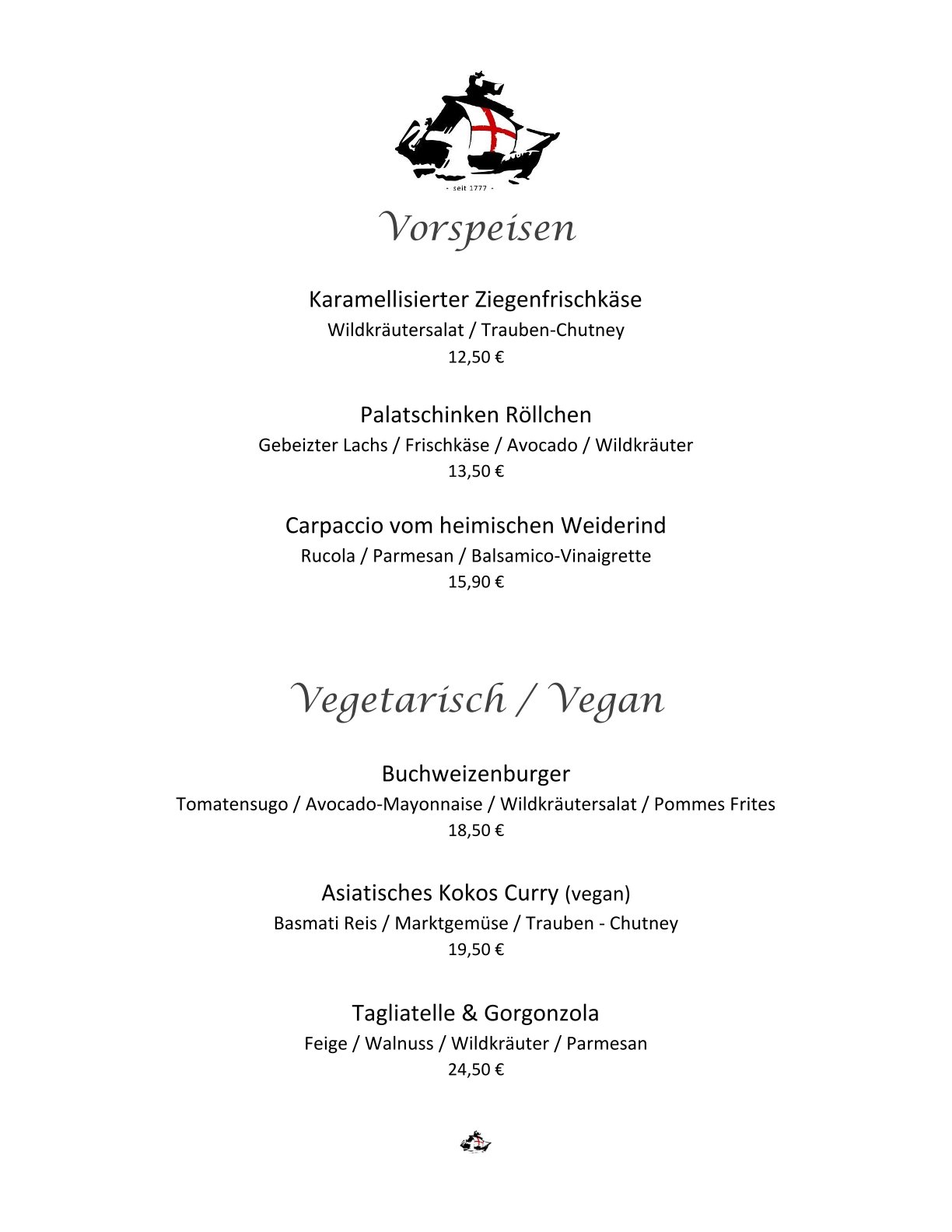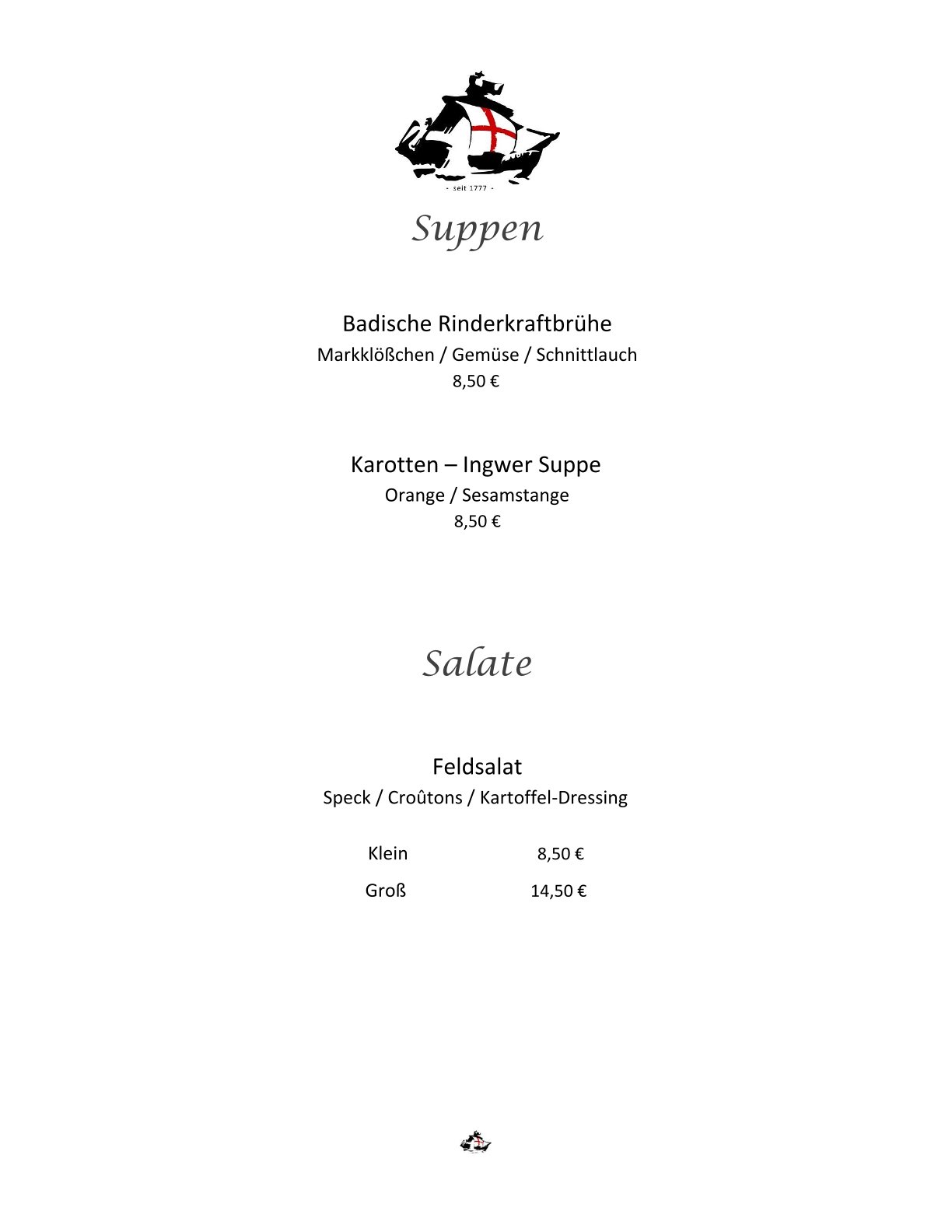 Speisekarte Restaurant Schiff Freiburg